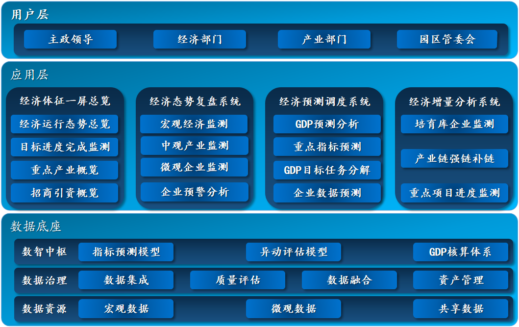 通過(guò)對(duì)宏觀經(jīng)濟(jì)指標(biāo)逐層下鉆穿透、剖析區(qū)域經(jīng)濟(jì)發(fā)展問(wèn)題根源。從宏觀經(jīng)濟(jì)監(jiān)測(cè)分析,到中觀產(chǎn)業(yè)監(jiān)測(cè)分析,再到微觀企業(yè)(項(xiàng)目)監(jiān)測(cè)分析,實(shí)現(xiàn)經(jīng)濟(jì)分析工作的全面性和深入性,找到經(jīng)濟(jì)運(yùn)行中的“問(wèn)題”或“堵點(diǎn)”。