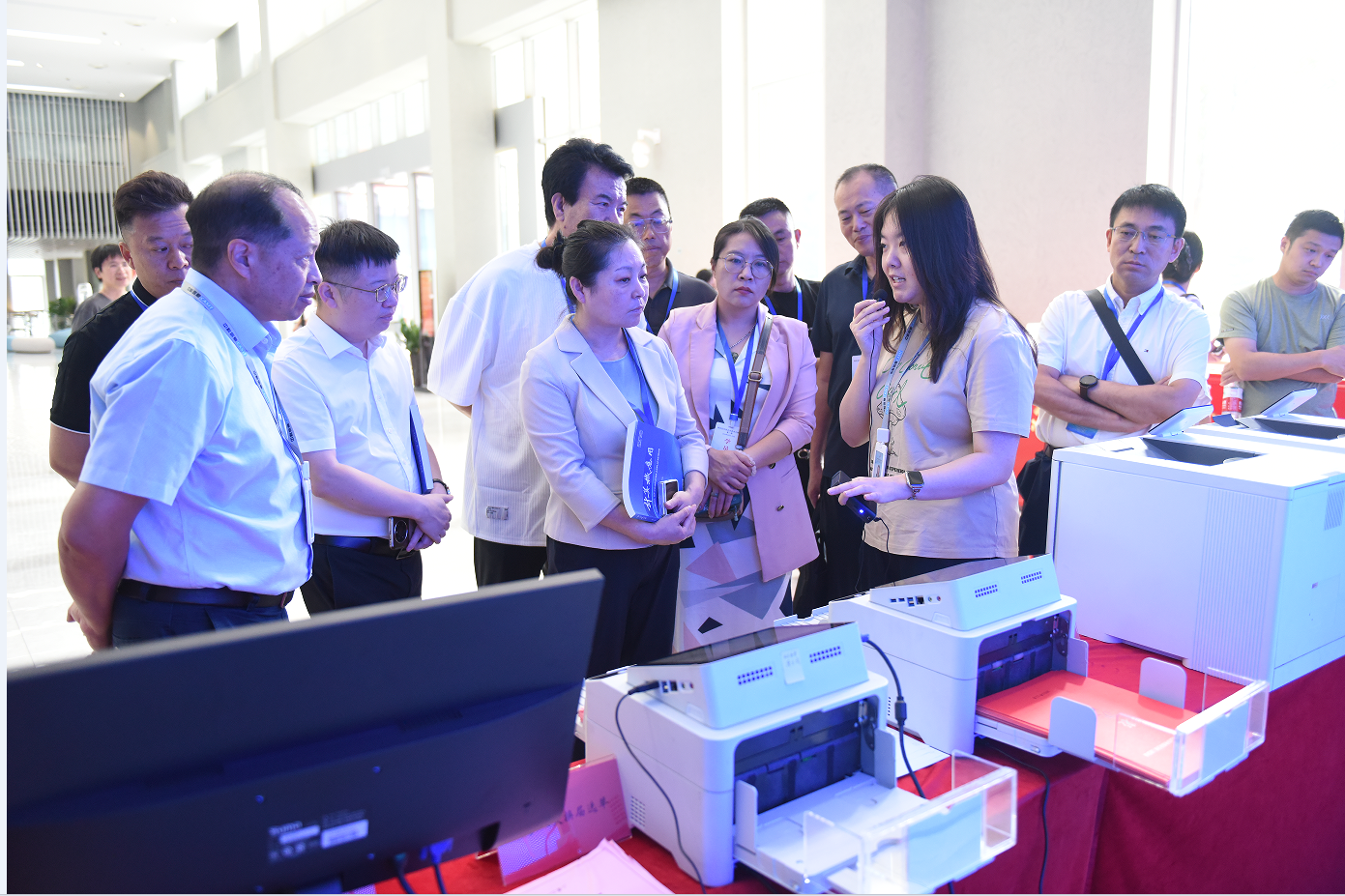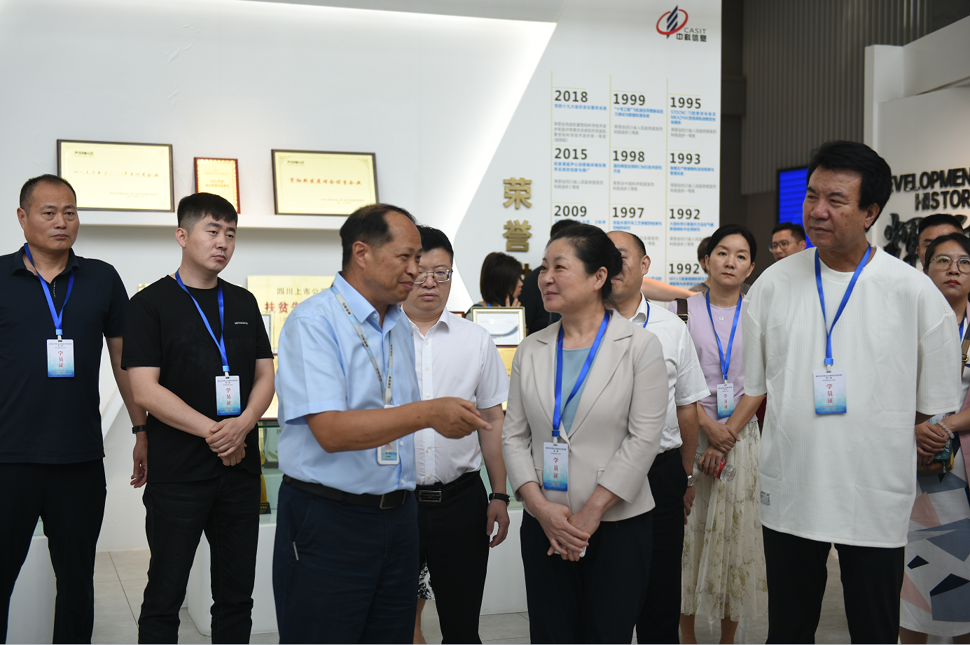 調(diào)研團(tuán)在鐘勇的陪同下參觀了中科信息品牌體驗(yàn)館,了解了公司發(fā)展歷程、研發(fā)與技術(shù)實(shí)力以及業(yè)務(wù)板塊,觀摩了公司服務(wù)政府、煙草、印鈔、油氣、建造、醫(yī)療等行業(yè)信息化建設(shè)的產(chǎn)品與應(yīng)用案例,來賓們對(duì)公司的技術(shù)優(yōu)勢(shì)及發(fā)展成果給予了高度評(píng)價(jià)。在聽完公司業(yè)務(wù)專題報(bào)告后,現(xiàn)場(chǎng)的企業(yè)家們對(duì)公司有了更深入的認(rèn)識(shí),紛紛就本企業(yè)智改數(shù)轉(zhuǎn)過程中的困惑、訴求向到場(chǎng)的技術(shù)專家們進(jìn)行咨詢,現(xiàn)場(chǎng)交流氣氛熱烈。通過本次交流,促進(jìn)了公司與長(zhǎng)春市企業(yè)的相互了解,解決了企業(yè)推進(jìn)數(shù)字化的難題,梳理出后續(xù)合作的線索。